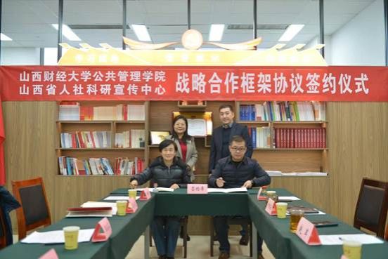 、山西人力资源和社会保障科研宣传中心联合举行战略合作框架协议签约暨学生联合培养基地揭牌仪式。院长郭淑芬,副院长冯小俊、段宇波、刘海燕,劳动与社会保障系副主任郭儒鹏,山西人力资源和社会保障科研宣传中心主任赵军,副主任秦文鸿、何林深等中心全体人员出席。