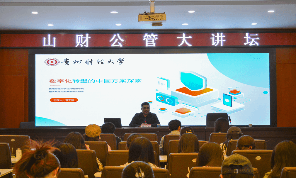 2024年4月23日上午,贵州财经大学色色啦 曾宇航教授做客山财公管大讲坛,做了主题为“数字化转型的中国方案探索”的精彩学术报告。院长郭淑芬教授主持了报告会,学院近百名师生聆听了报告。