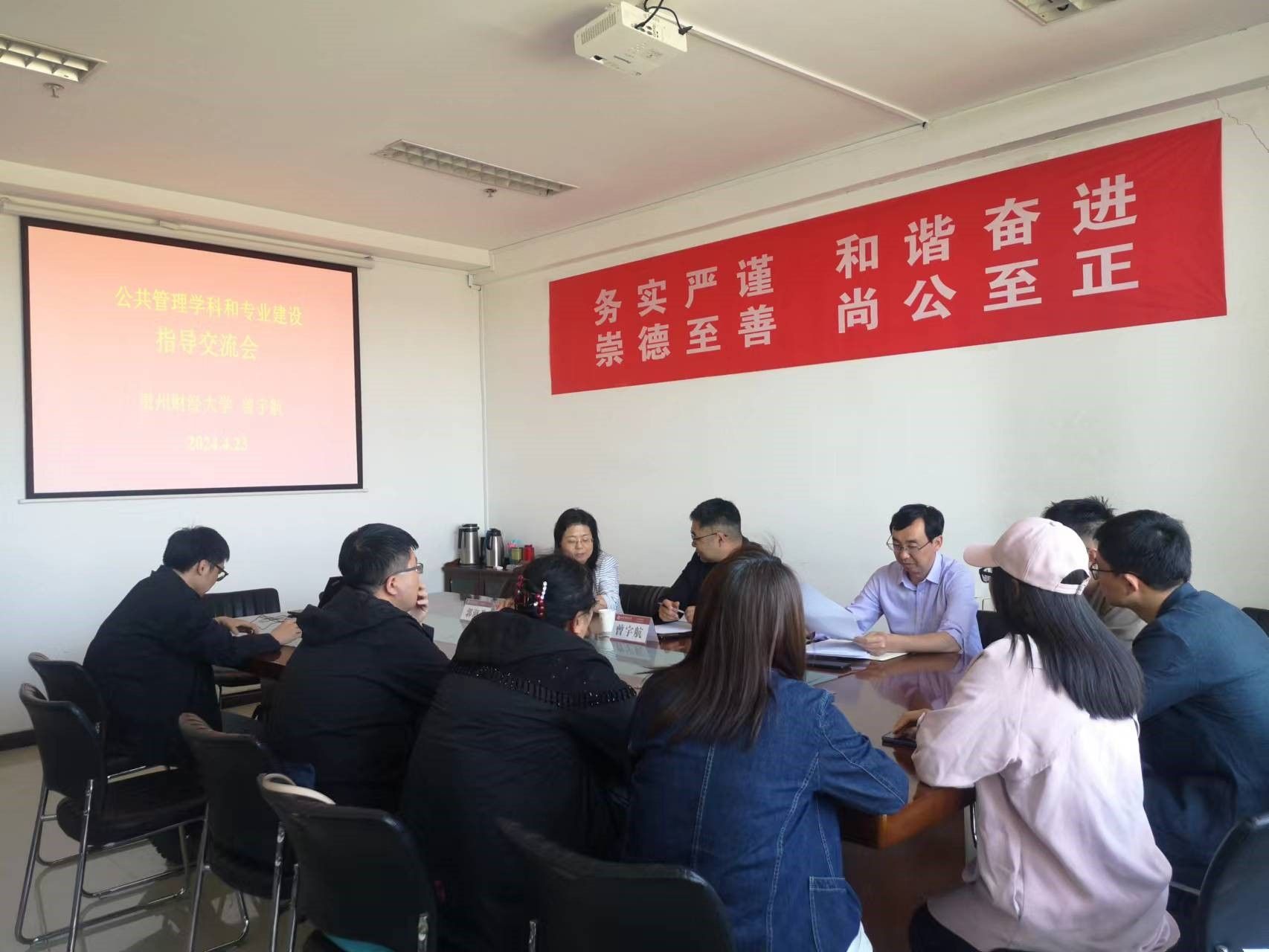 4月23日下午,曾宇航教授与学院学科和专业负责人进行了座谈,分享了贵州财经大学在公共管理学科和专业建设方面的成功经验,双方进行了深入交流和探讨。4月24日上午,曾教授对色色啦 申报2024年国家社科基金项目的部分教师进行了一对一辅导。