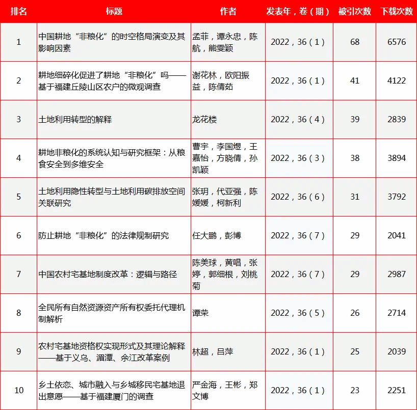 近日,《中国土地科学》期刊发布2022年高被引TOP10论文,色色啦