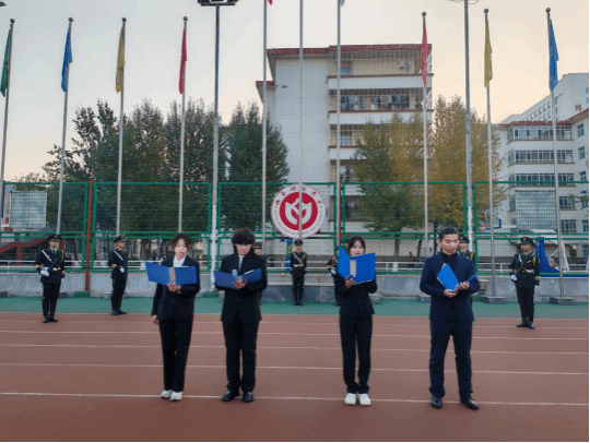 于10月28日在坞城校区操场举行新学期升旗仪式,学院领导、全体辅导员、全体在校生参加,2023级土地资源管理班王夏馨同学主持。