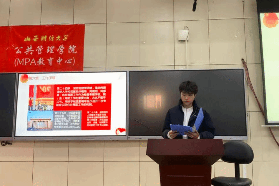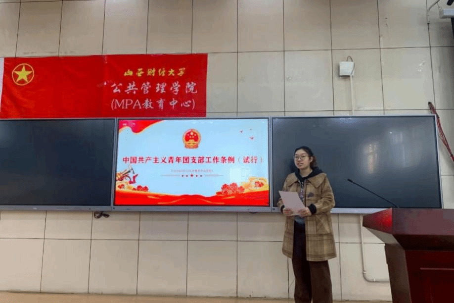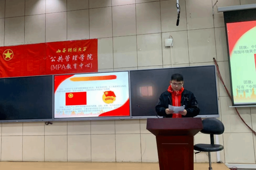 各级团学骨干作深入学习交流:2021土地资源管理1班詹舒雅领学了《中国共产主义青年团支部工作条例(试行)》,对团的组织体系建设、团员队伍建设、团干部队伍建设、青年人才队伍建设、团的纪律建设等内容作全面阐述,号召大家要认真学习领会习近平新时代中国特色社会主义思想,提高对党的基本理论、基本路线、基本方略的领悟力,做有理想、敢担当、 能吃苦、肯奋斗的新时代好青年;2022行政管理班梁浩田介绍了《中华全国学生联合会章程》,再次明确中华全国学生联合会章程行动纲领及其基本任务,动员大家要坚持党的领导,争做中国特色社会主义事业要求的合格人才,筑牢对党忠诚、坚定理想信念、发扬斗争精神、勇于挺膺担当,充分激发新时代山财青年的青春激情;2022行政管理研究生班张子瑞同学根据《色色啦