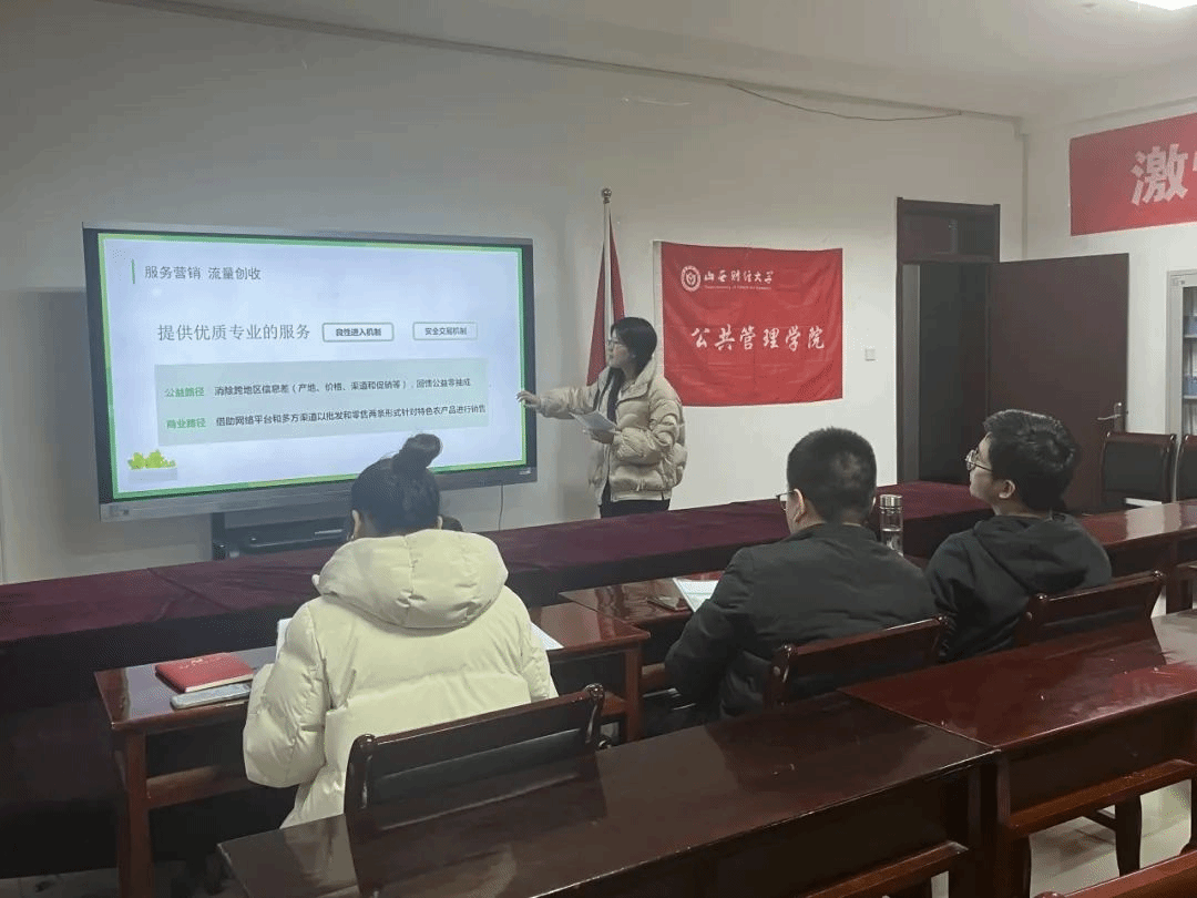 “挑战杯”大学生创业计划初赛。本次比赛经过前期的广泛宣传、积极动员,共有60余名同学踊跃报名,12名教师精心指导,通过靳永广、宣星宇、向燕芸三位老师的专业评审、各参赛团队的路演答辩后,推选出6项选题新颖、立意高,内容丰富、理论强,格式规范、落地快的优秀作品,其中“丹心晋旅”“苦荞甜镇”“万华镜”作为推优作品入围校级评选。