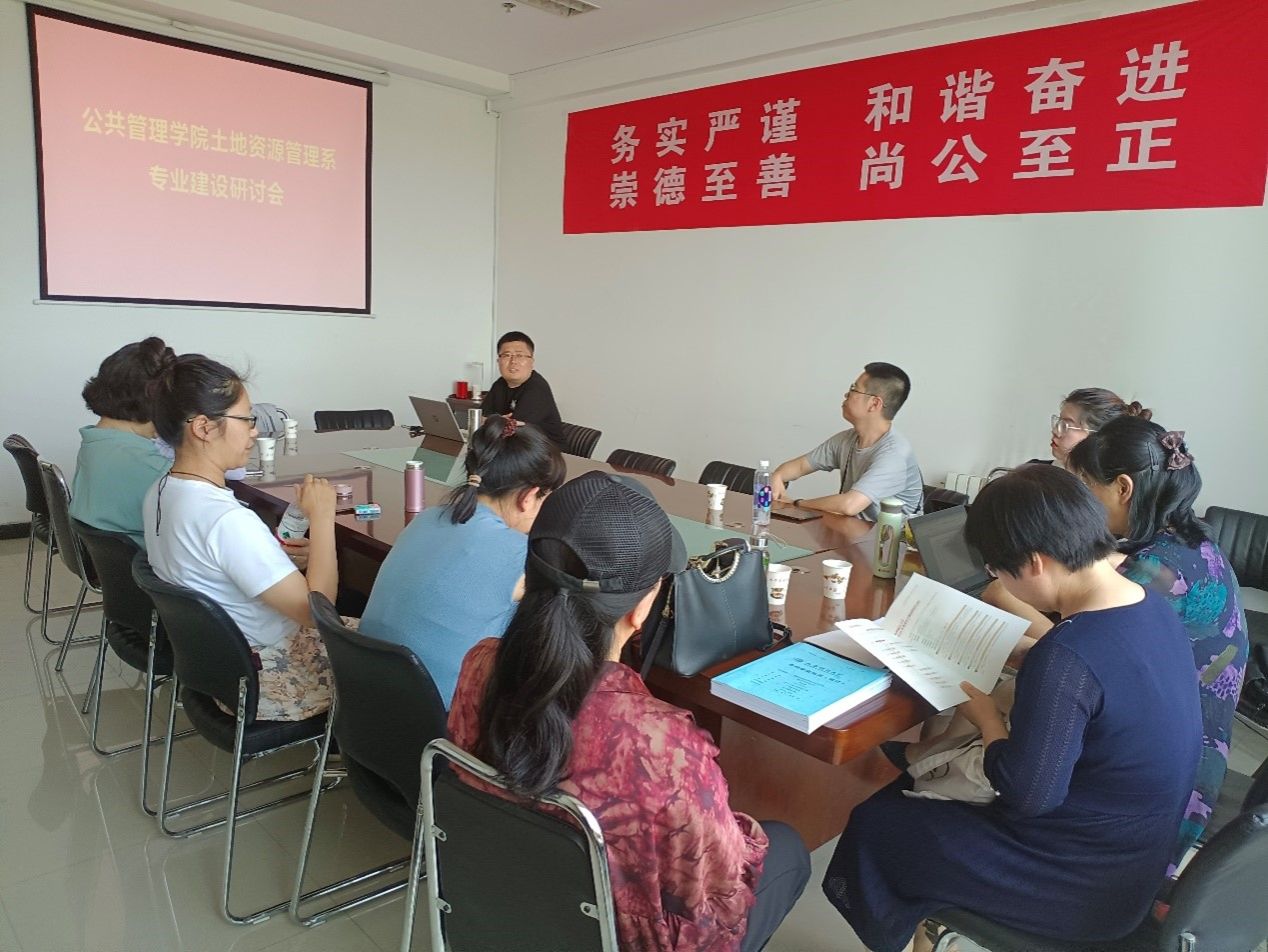 土地资源管理系在博学楼会议室召开专业建设研讨会,会议由系主任林超主持。