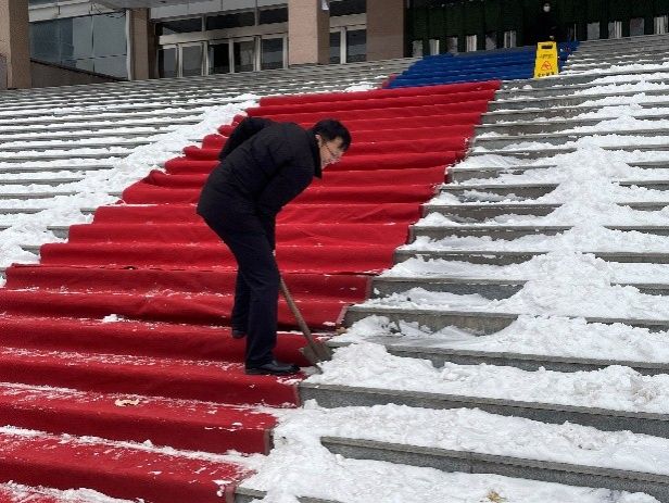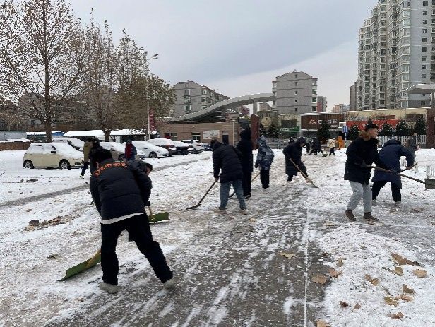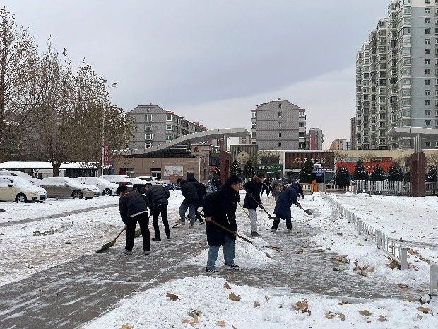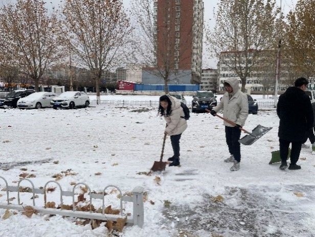下午两点,大家齐聚立信楼门口阶梯,用除雪工具将台阶上和路面上的积雪清理得干干净净,为我校师生开辟出一条条安全的路径。在此过程中,同志们满怀热情,自由组合,齐心协力,充满干劲,以极高的效率出色地完成了除雪任务。在热火朝天的劳动中,大家不畏严寒,奋勇向前,争当先锋模范的带头兵,在深耕奉献精神的过程中,充分发挥中国共产党乐于奉献、服务群众的优良传统,发扬党全心全意为人民服务的宗旨。